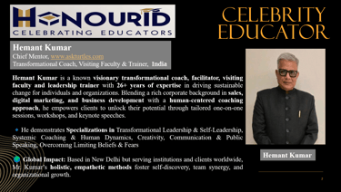 ”HonourID has given me a platform to express my gratitude to the teachers who shaped my future. Their dedication and belief in me have been the foundation of my success, and I’m thrilled to see them celebrated here.”