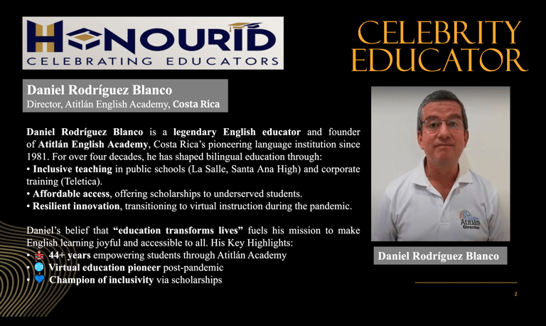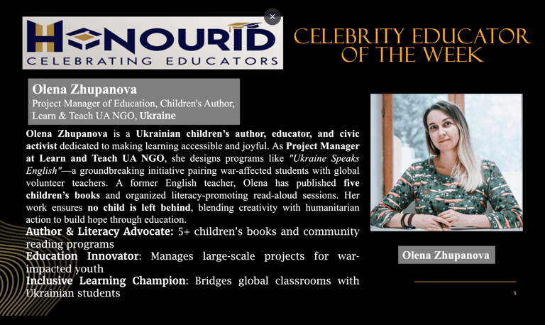 "As a multi-platform educator, I have so much gratitude for HonourId and its invaluable vision promoting the celebration, support, and empowerment of educators. The positive and collaborative power this organization yields impacts teachers and students. Investing in teachers is investing in students.